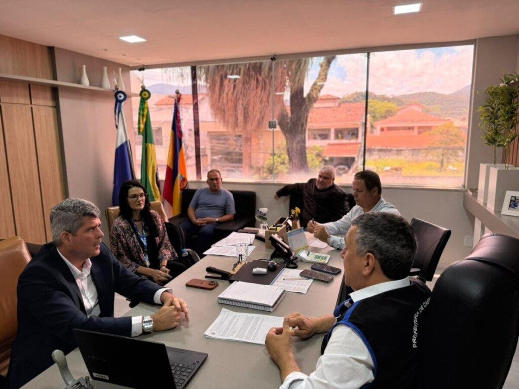 Participaram também da reunião o vice-prefeito Marquinho da Vaca, o secretário de Fazenda José, e a chefe de Gabinete Thaís Rodrigues.